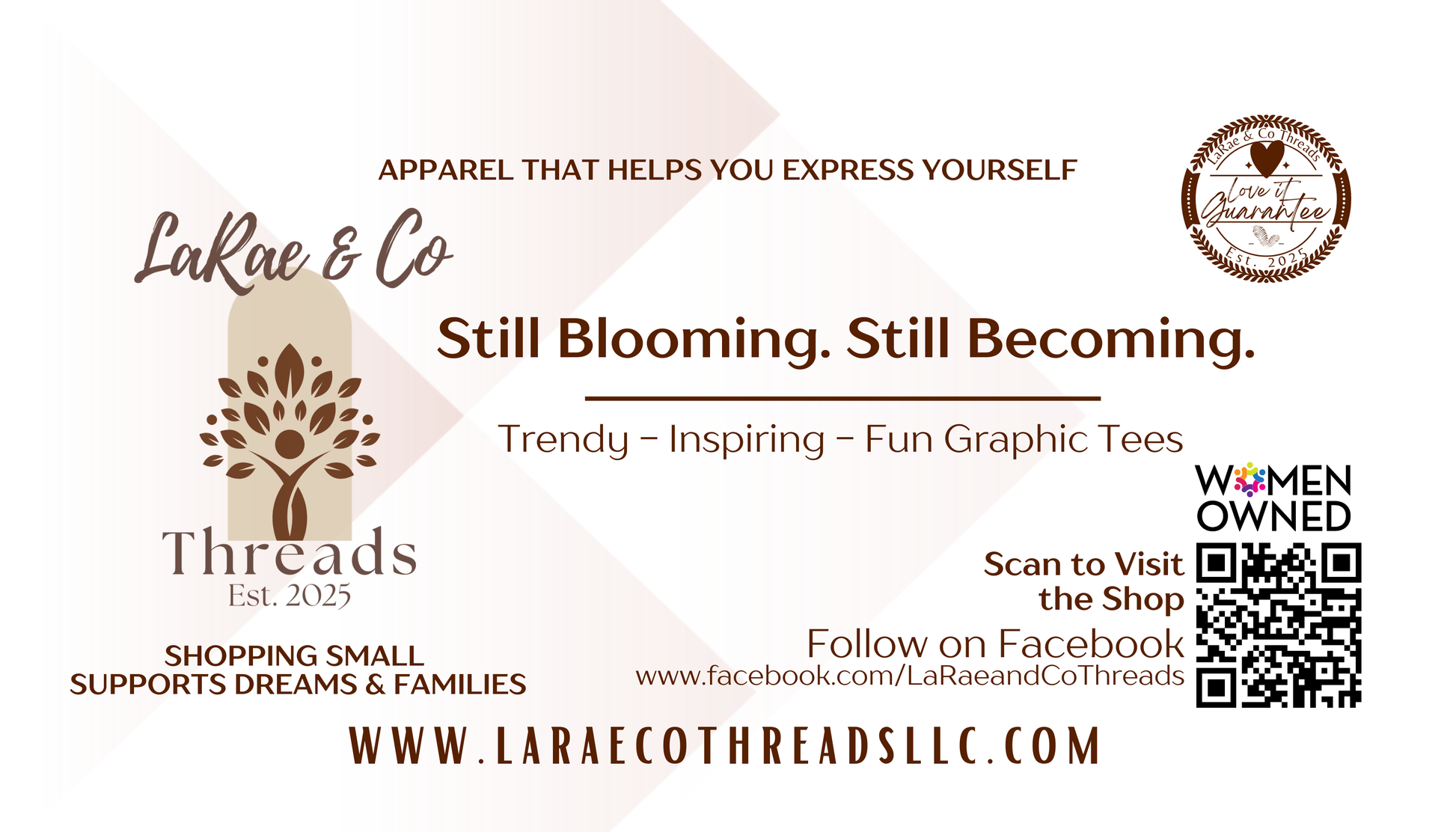 LaRae & Co Threads creates pieces that inspire, uplift, and celebrate individuality. My designs are made to help you express yourself, spread kindness, and wear your values confidently.